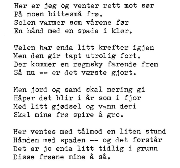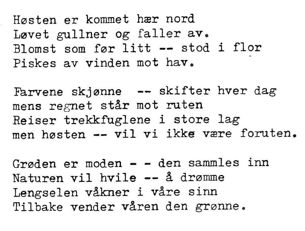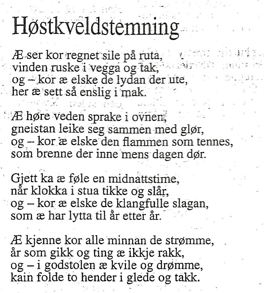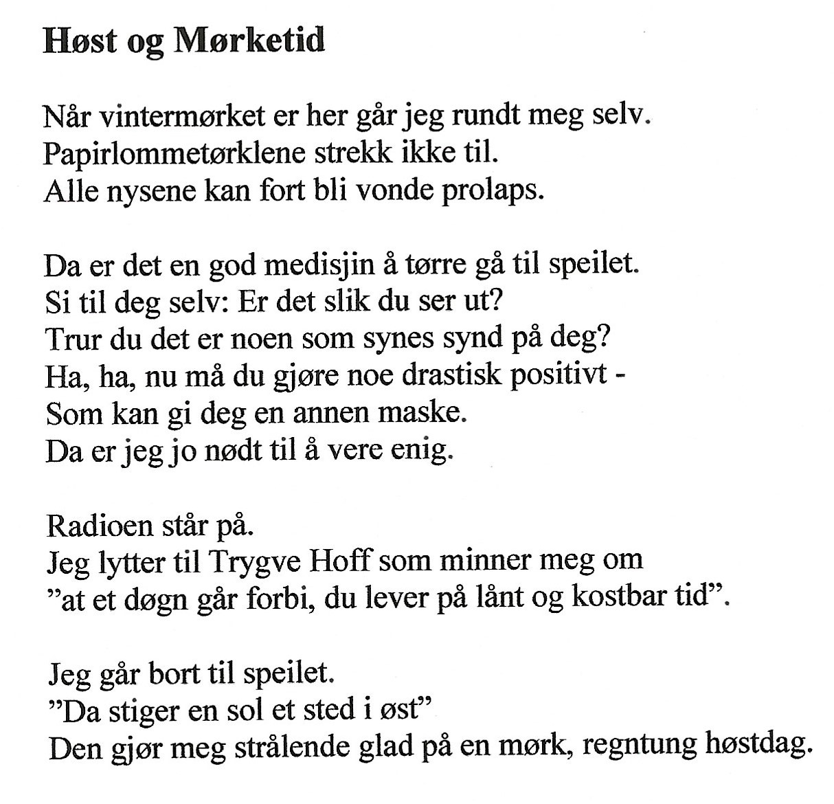 Dersom diktene har vært publisert tidligere på en eller annen måte - er scannet original lagt inn, der slik finnes. Det kan derfor forekomme skrivefeil o.l. - håper likevel at meningen kommer fram.