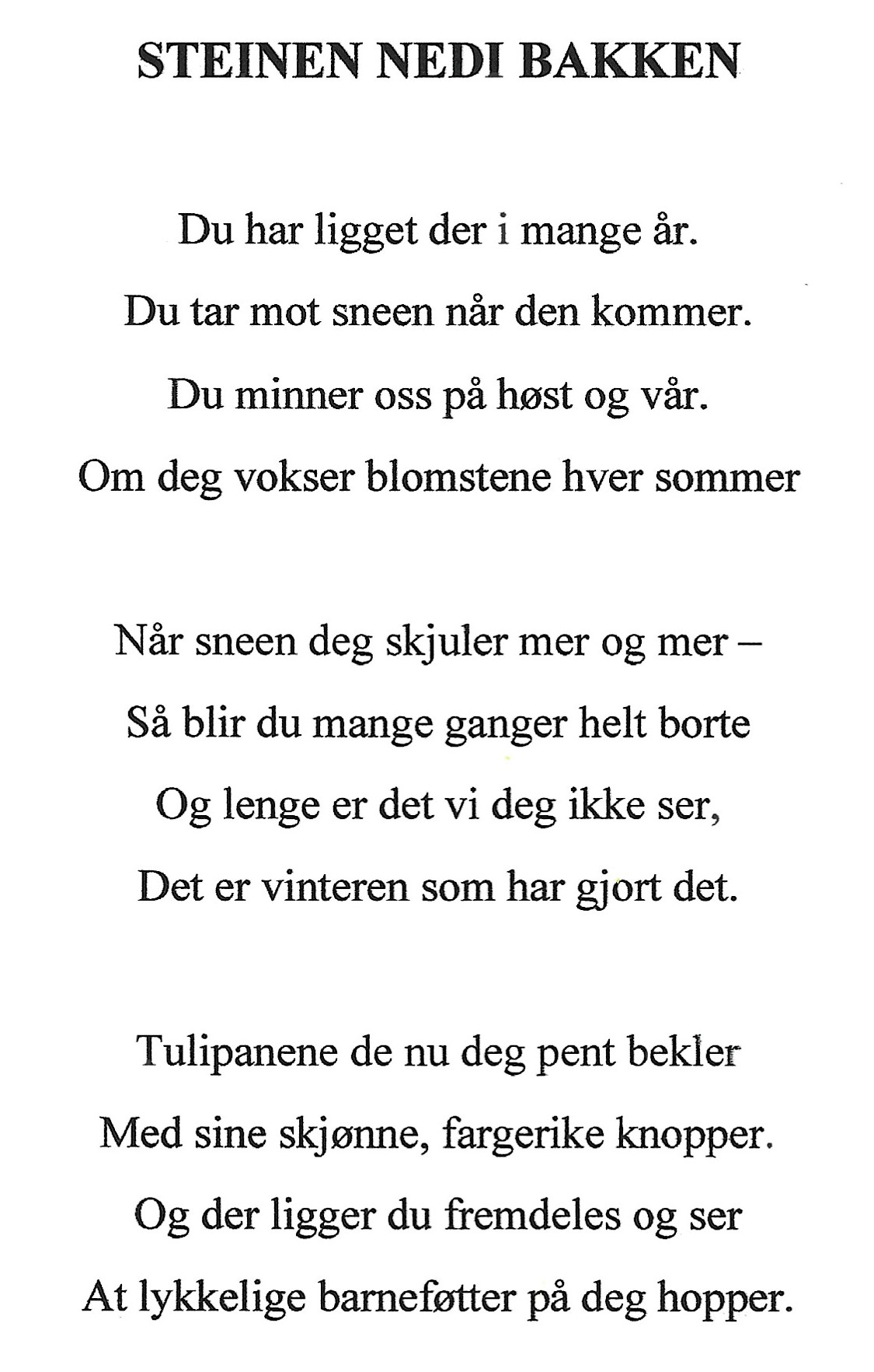 Steinen nede i bakken ved veien opp til Høgstad. Foto JH