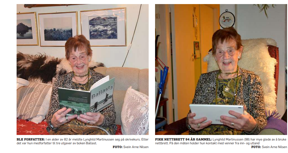 Som 95-åring fikk hun nettbrett. Og det er flittig brukt til å holde kontakt med venner og familie (se bildet over).
