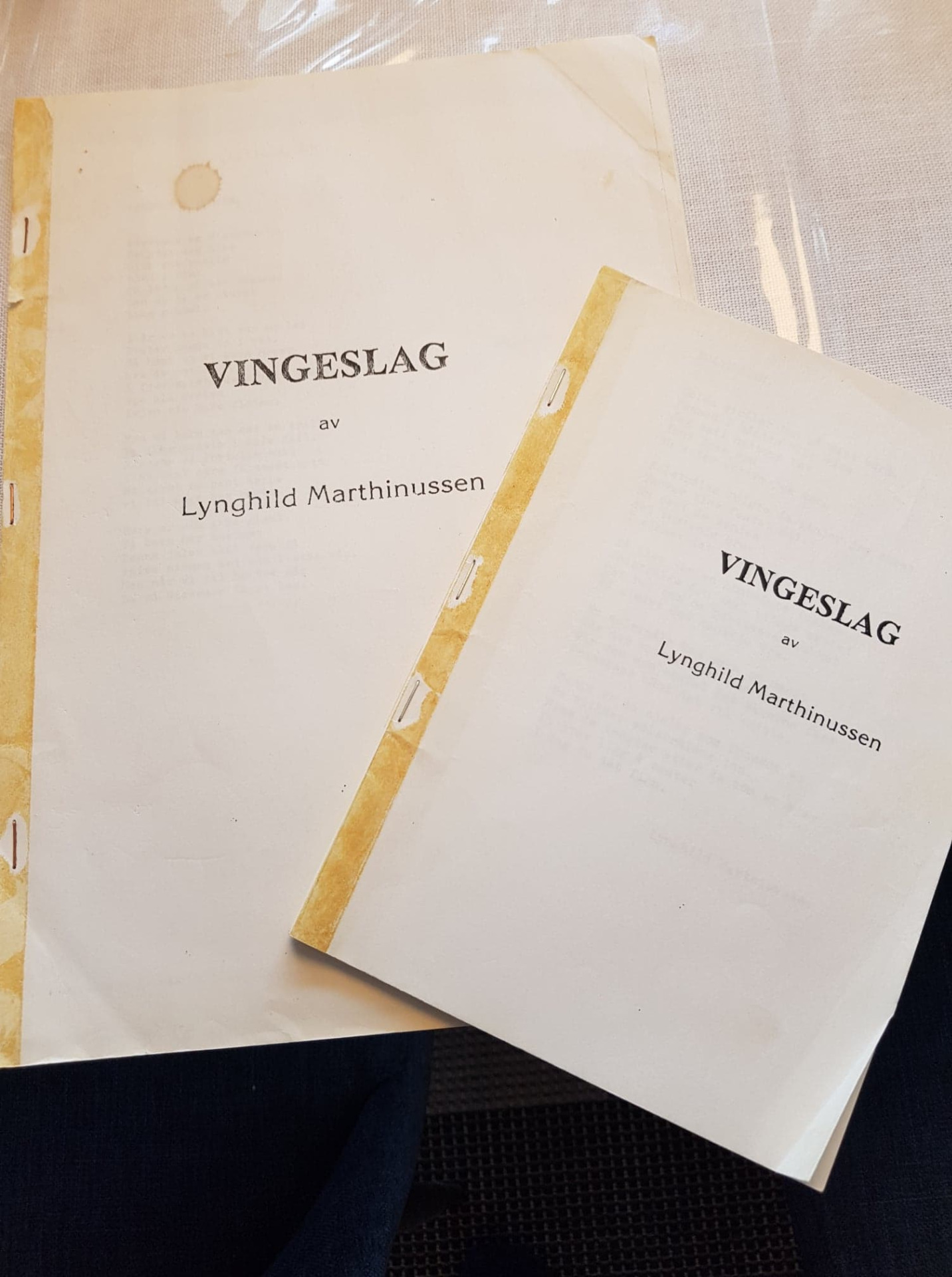 Lynghild hadde i store deler av livet skrevet dikt. Det fortsatte hun med - og etter hvert fikk hun samlet en god del av dem i to hefter som fikk navet "Vingeslag".