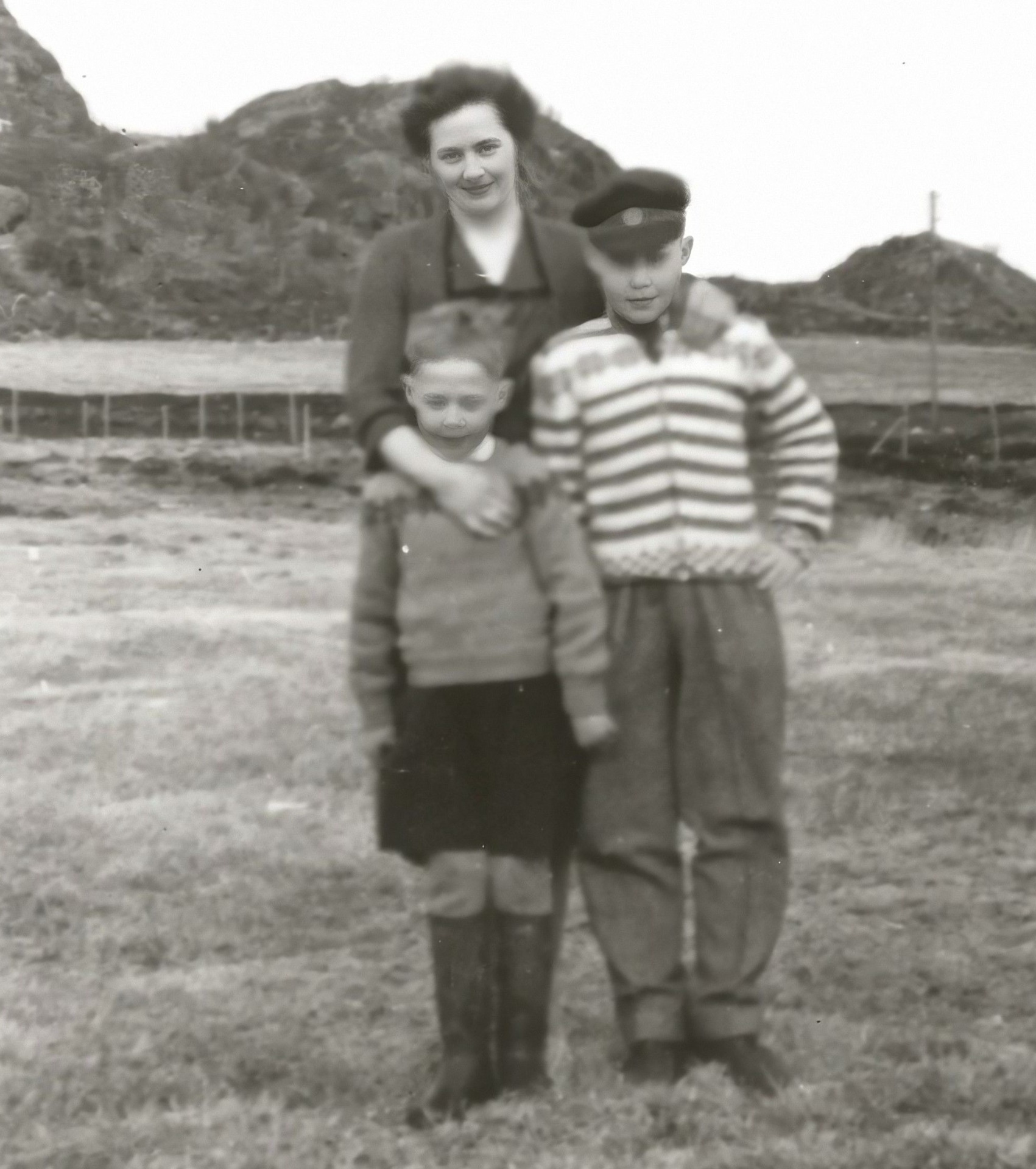 Med sønnene på marka utenfor huset på Høgstad - 1960.