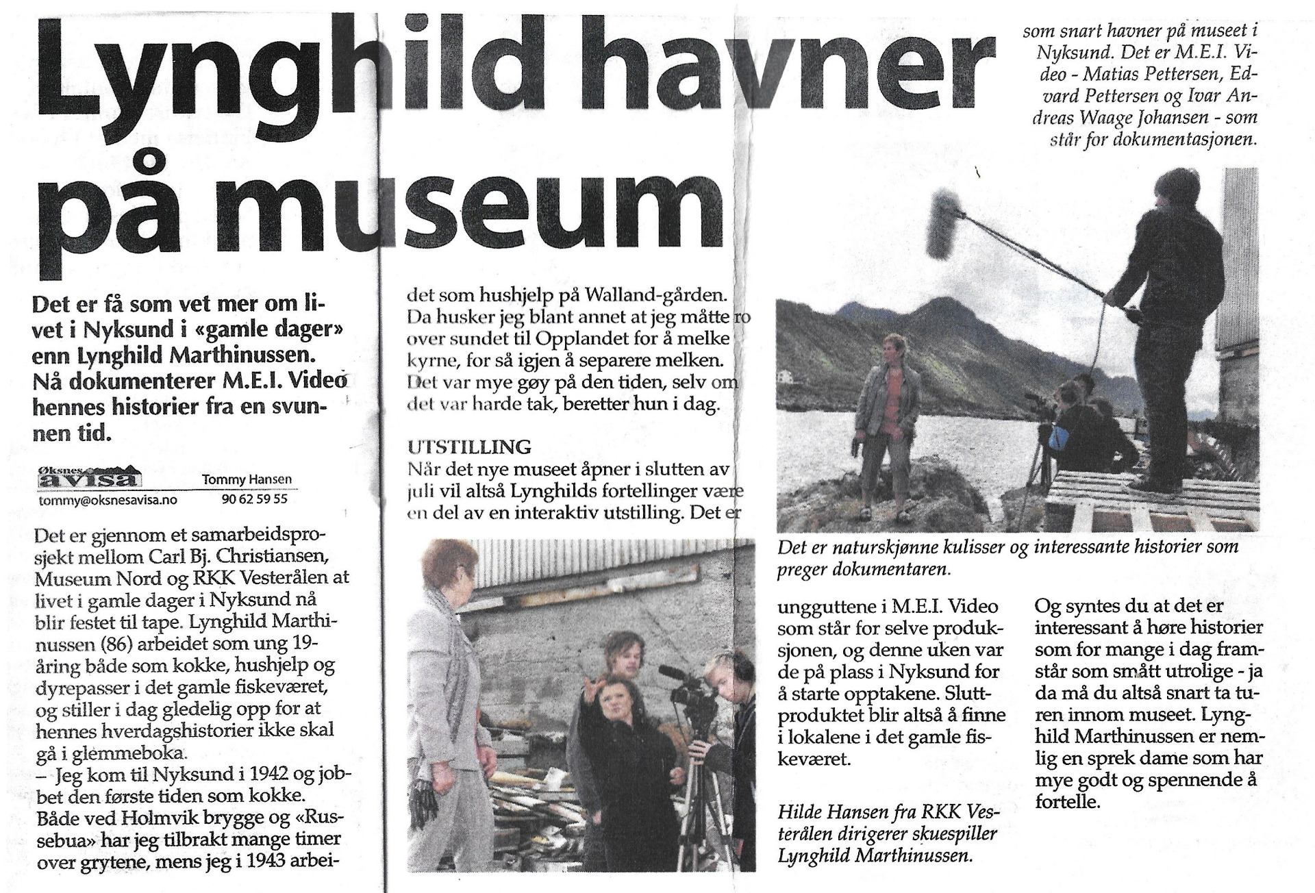 Litt senere gikk turen til Nyksund - der Lynghild arbeidet som kokke for et båtmannskap og også som tjenestejente hos familien Valland. Lynghild forteller selv om tiden som tjenestejente i Nyksund på første underside - historien heter "Minner fra en huspost i Nyksund".