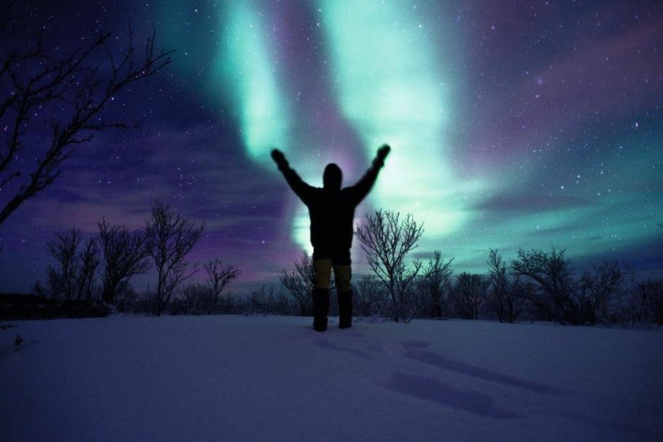 Tenk å være så heldig å stå på trappa heime en høstkveld og se nordlyset bukte kroppen sin i en smidig magedans, vinke ned til oss og gjøre dobbel salto - før den smyger seg ned og stryker oss på kinnet, for så å styre mot høyere mål. Da drømmer jeg at jeg henger meg i halen på en rakett og blir med på en slyngtur i rommet for å se andre galakser, månelandet og superstore stjerner som gløder - for så å komme tilbake til jorda på et stjerneskudd og rett inn gangdøra heime.